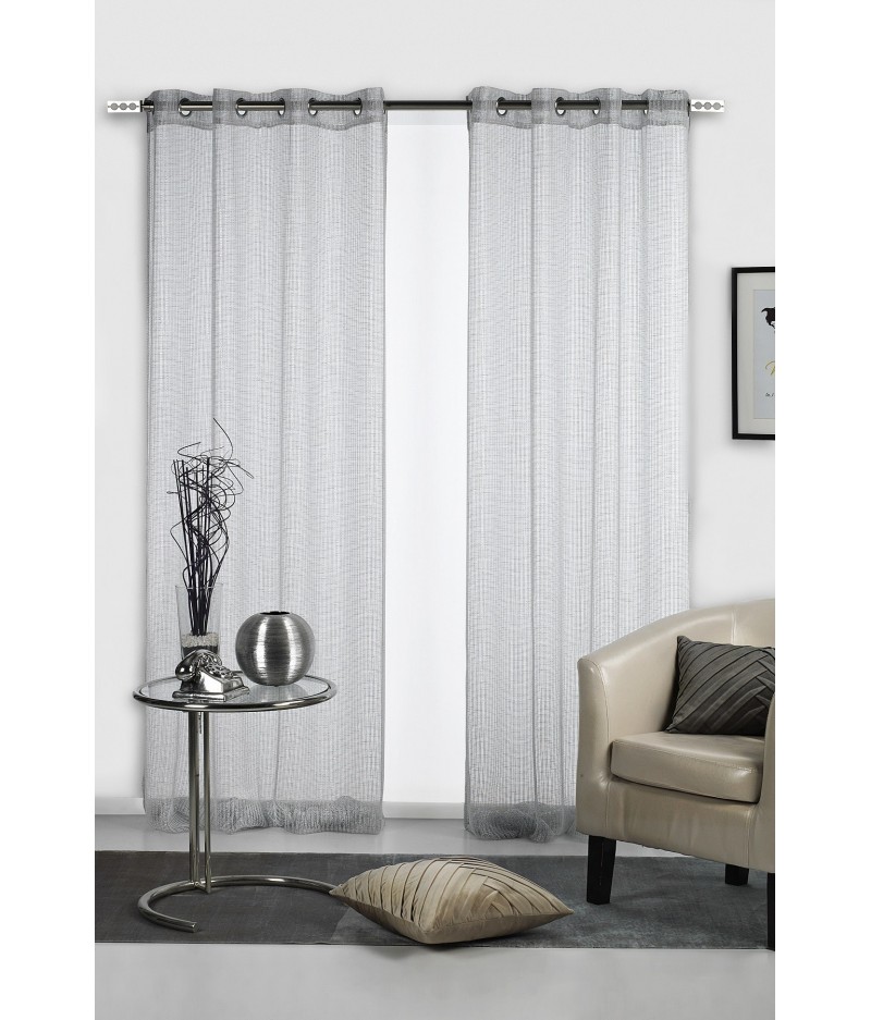 VISILLO DECORATIVO DE MALLA CON FINOS HILOS METALIZADOS, PARA DECORAR CUALQUIER ESTANCIA. SU MEDIDA ESTÁNDAR Y SU SISTEMA DE OLLAOS PERMITEN SU FÁCIL COLOCACIÓN.