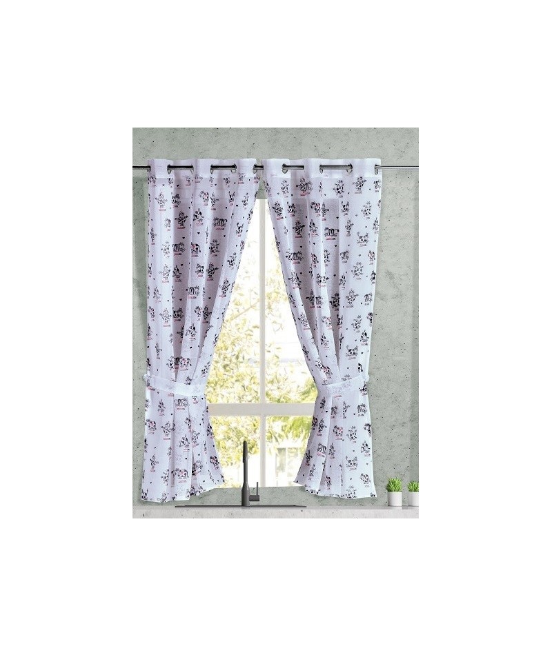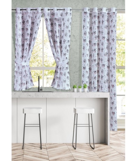 VISILLO COCINA ESTAMPADO "LOVING COWS" CON OLLAOS PARA VENTANA