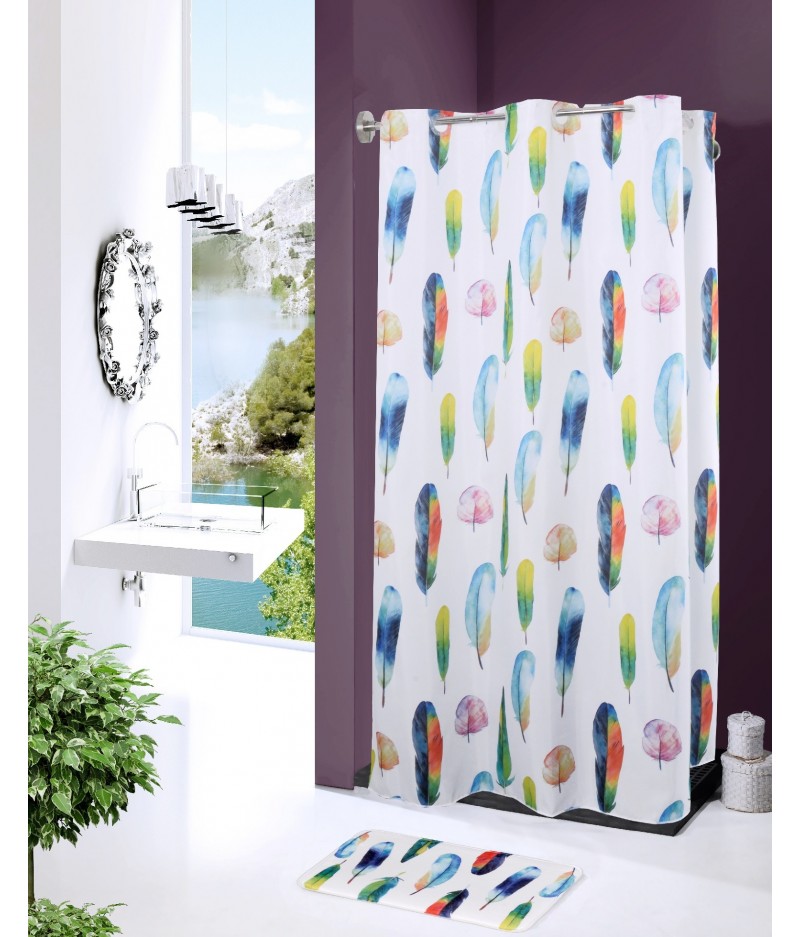 CORTINA DE BAÑO "PLUMAS MULTICOLOR"